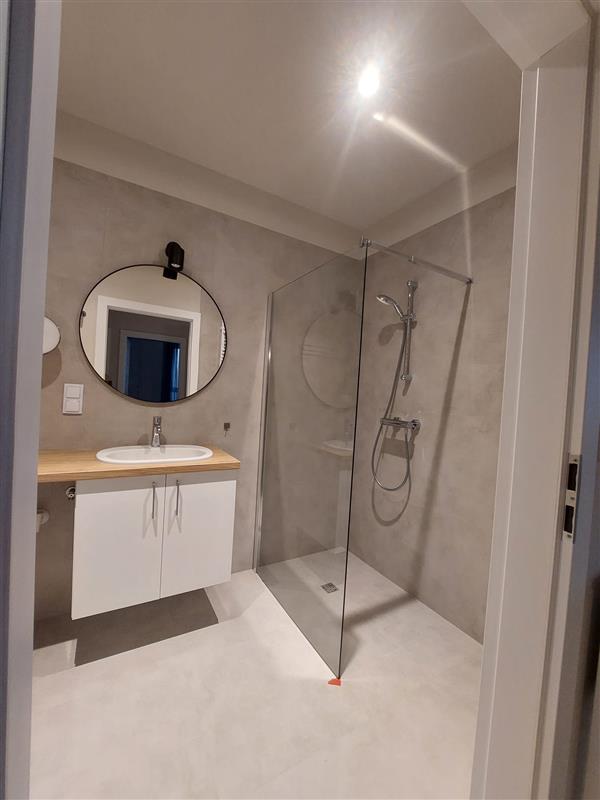 Łazienka – wyposażona w pralkę, kabinę prysznicową, WC i umywalkę