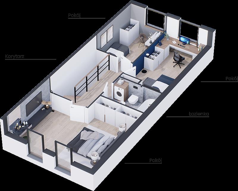 Takie rozplanowanie przestrzeni zapewnia komfort, prywatność oraz wygodę codziennego życia.