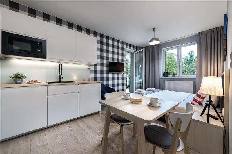 Każdy apartament oprócz łazienki posiada WiFi, lodówkę i TV
