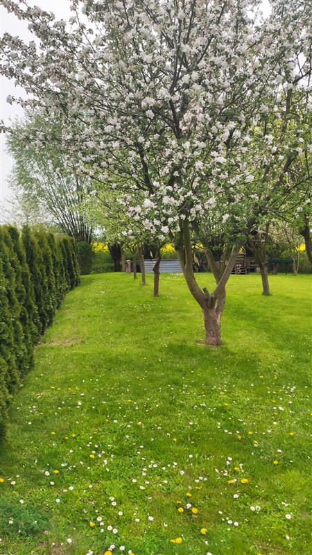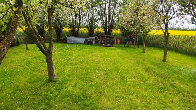 powierzchnia 522 m2, objęta planem zagospodarowania przestrzennego jako zabudowa jednorodzinna, wielorodzinna, garaże, budynki gospodarcze itd. Działka zagospodarowana pod rekreakcję i wypoczynek. Na jej terenie urządzony jest sad owocowy ( jabłonie, grusze i śliwy ), ogródek warzywny, miejsce na ognisko, gril murowany, kuchnia letnia, pomieszczenia gospodarcze, garaż itd.